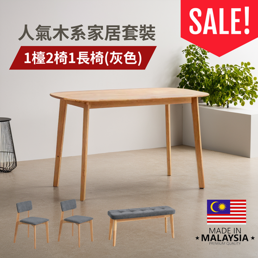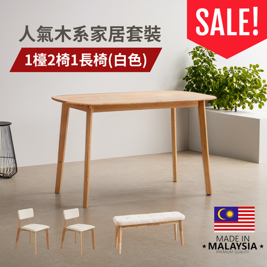 Jeli 白橡木色餐檯套裝 (1檯2椅1長椅)120cm(W) x 75cm(H) x 75cm(L)